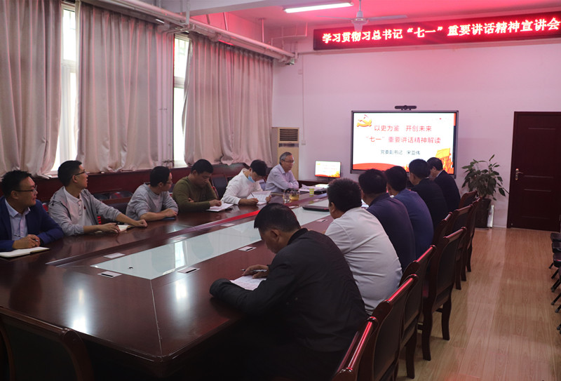 会议室作学习贯彻习近平总书记“七一”重要讲话精神专题宣讲。学院班子成员和科级干部参加了会议。报告会由院党委书记赵亦芳主持。