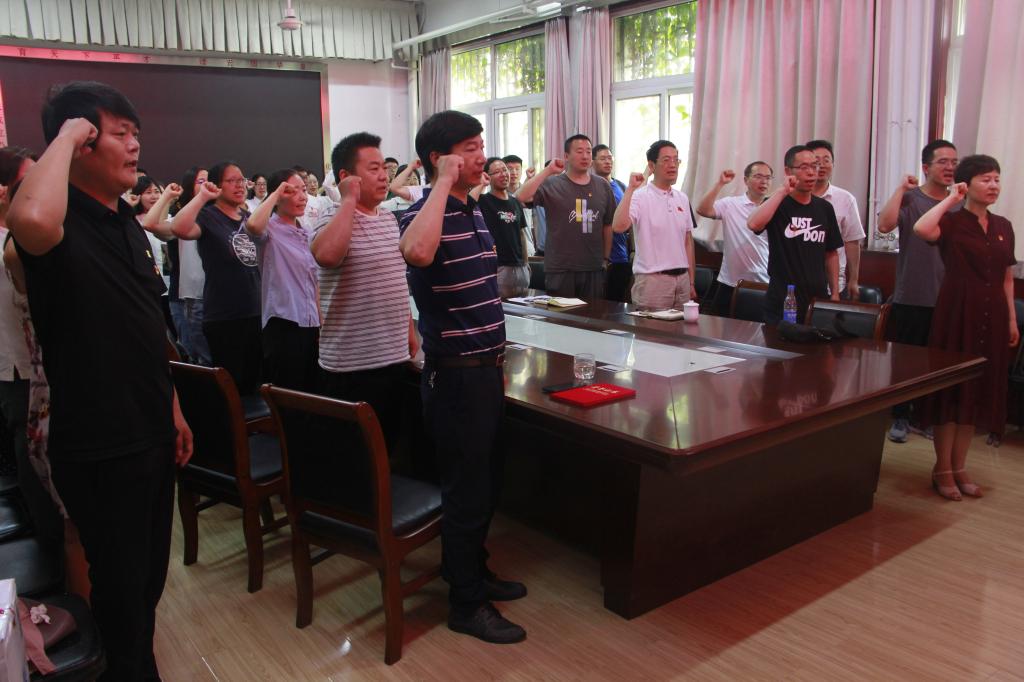在赵亦芳的带领下,举行了重温入党誓词仪式,全体师生党员面对鲜艳的党旗,举起右拳,庄严宣誓,表达为共产主义事业奋斗终身的信心和决心。