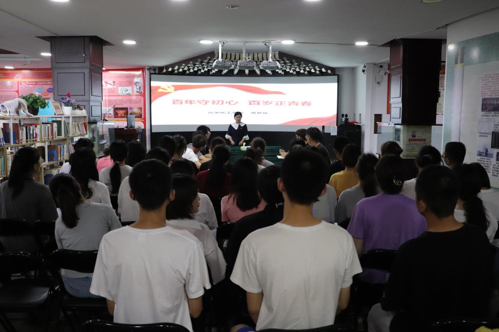 辅导员苏梦瑶为学生党员上党课,她以“百年守初心,百岁正青春”为题,讲述了一代又一代中国共产党人,为赢得民族独立和人民解放、实现国家富强和人民幸福,艰苦奋斗、无私奉献的崇高情怀。
