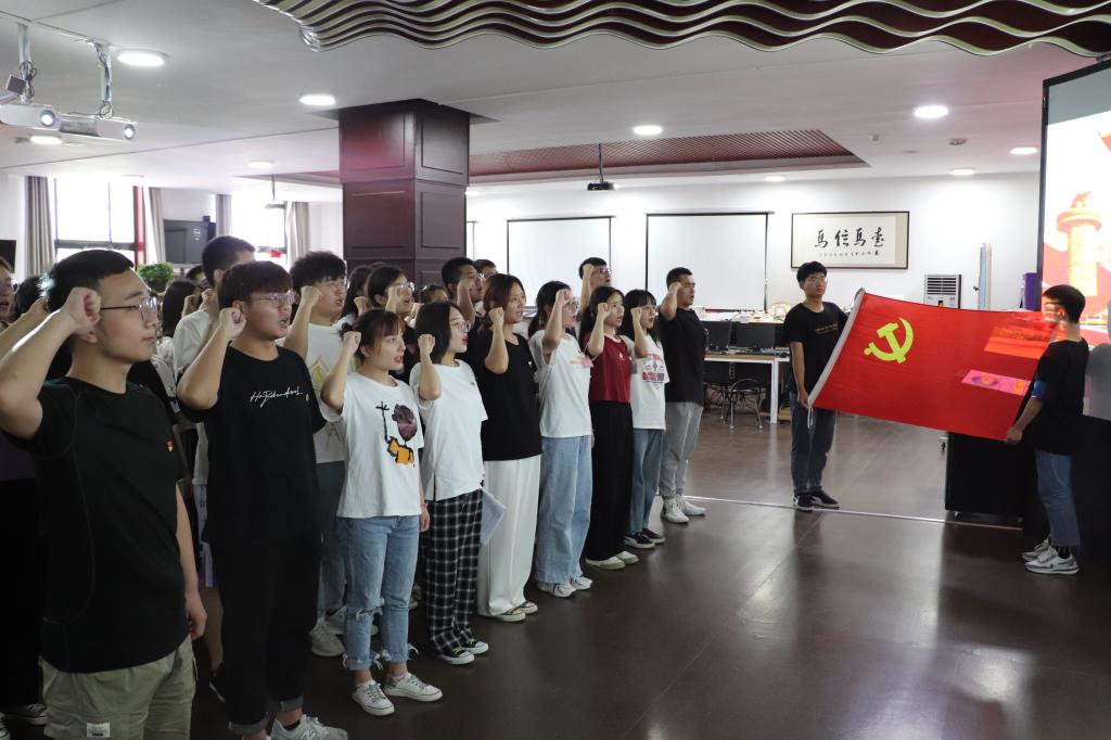 会上,举行了入党宣誓仪式,在鲜艳的党旗下,新党员举起右拳,庄严宣誓,表达为共产主义事业奋斗终身的信心和决心。